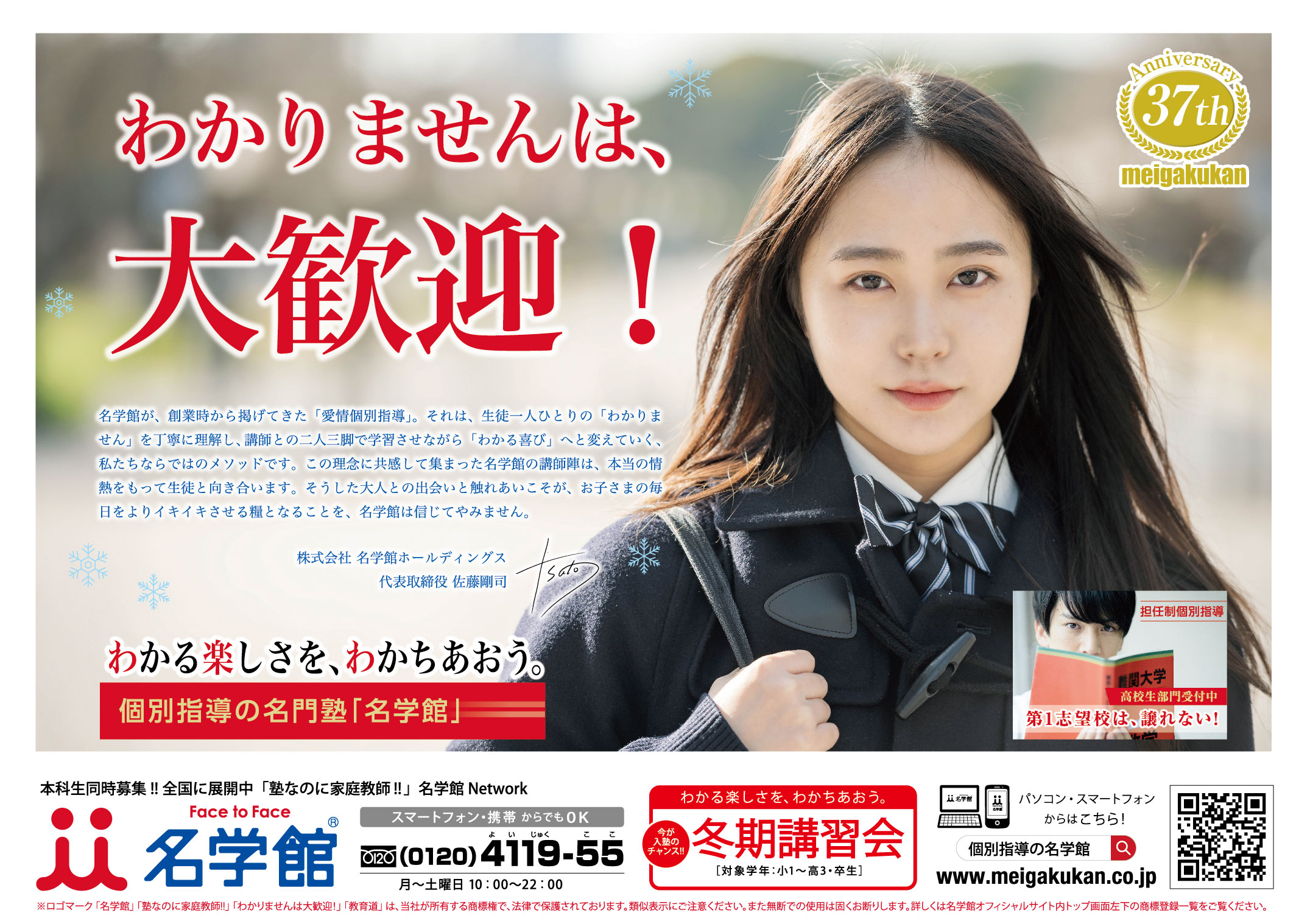 ▼個別指導の名門塾「名学館」から冬期講習会生受付のお知らせ